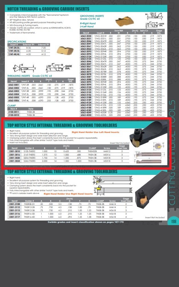 - Fully interchangeable with other similar “notch” type tools and inserts.