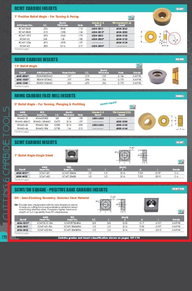 SCMT-431-EM nc-TiAIN COATED CARBIDE INSERT (6056-0431) (SKU: 6056-0431)