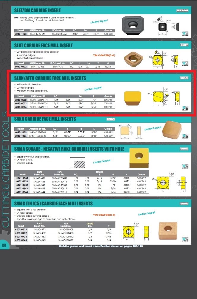 SEKN-1504AFTN COATED CARBIDE FACE MILL INSERT (6010-0006) (SKU: 6010-0006)