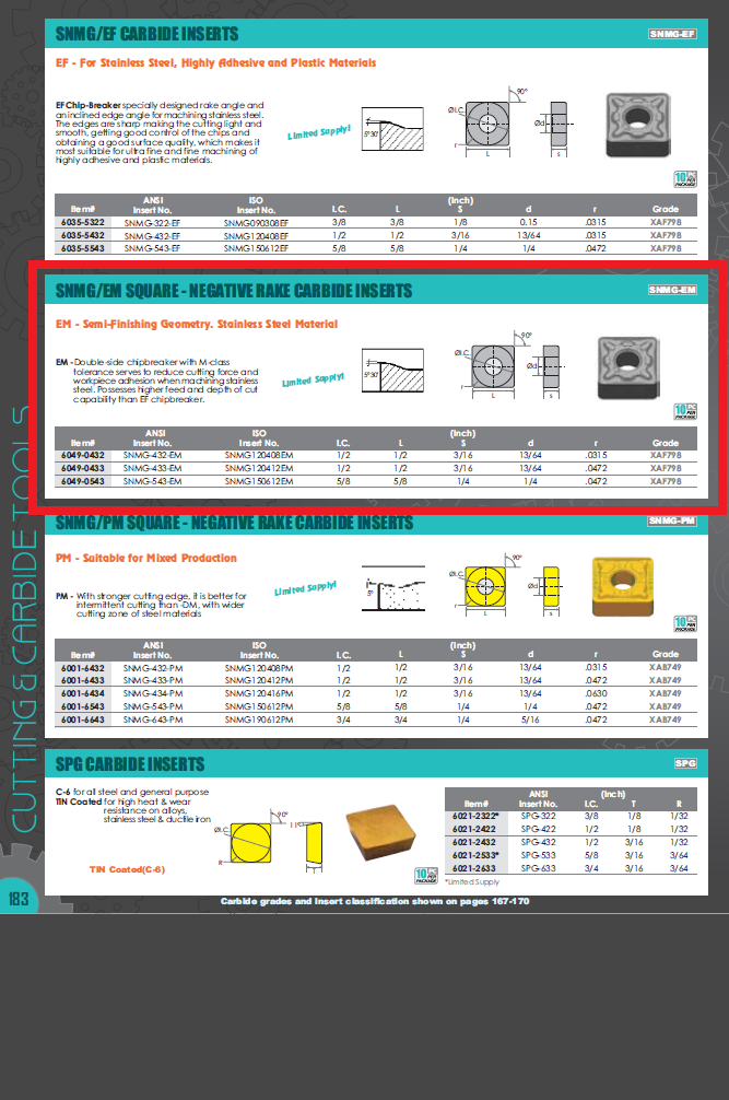 SNMG-433-EM COATED CARBIDE INSERT (6049-0433) (SKU: 6049-0433)