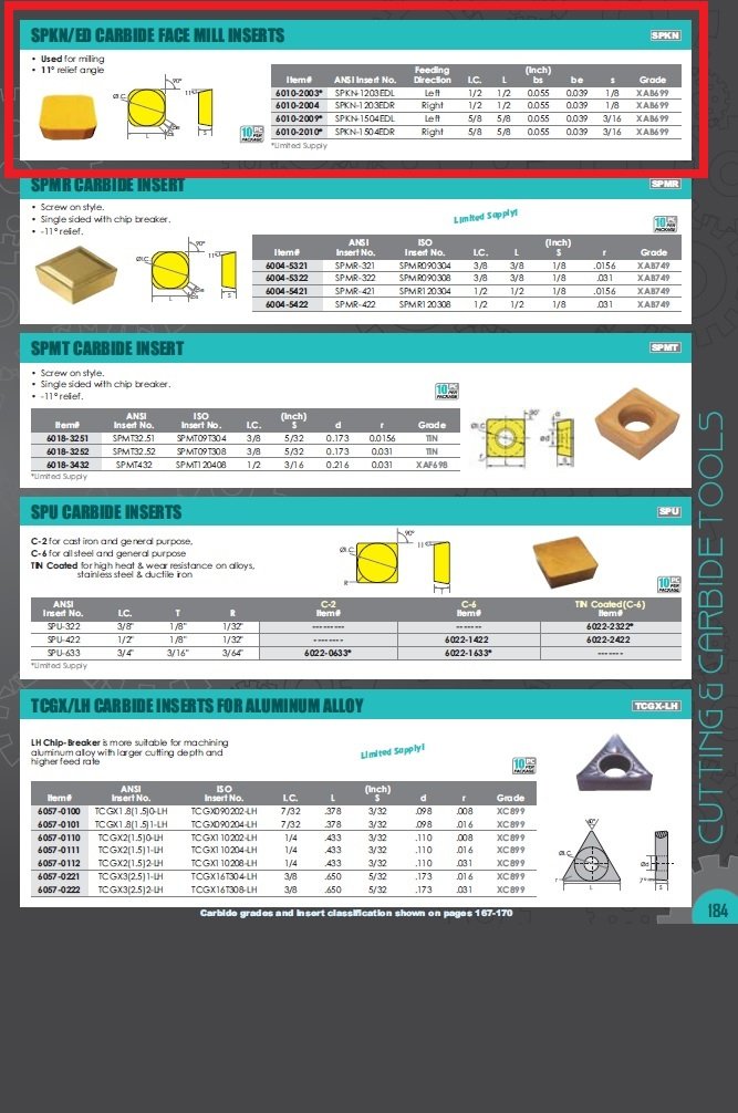 SPKN-1504EDL LEFT HAND COATED CARBIDE FACE MILL INSERT (6010-2009) (SKU: 6010-2009)