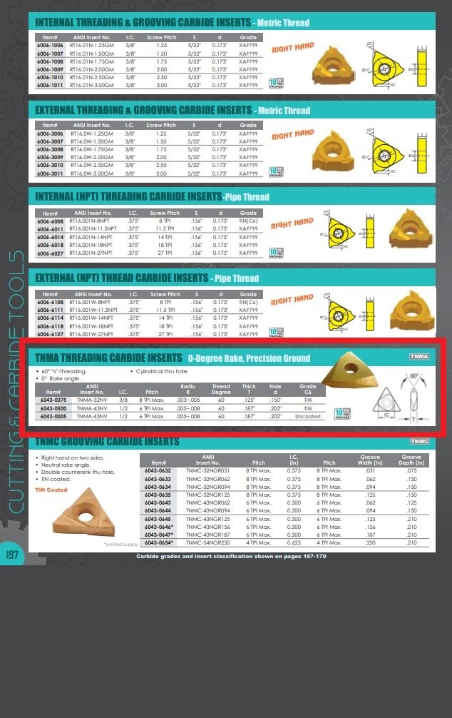 TNMA-43NV TiN COATED CARBIDE INSERT (6043-0500) (SKU: 6043-0500)