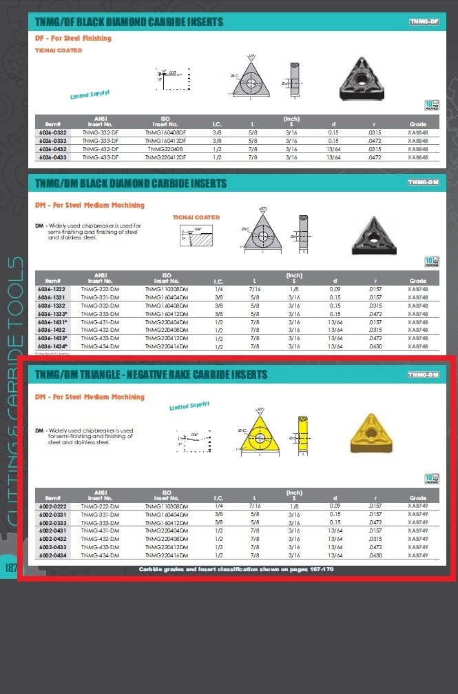 - TNMG-433-DM Triangle Negative Rake Coated Carbide Insert