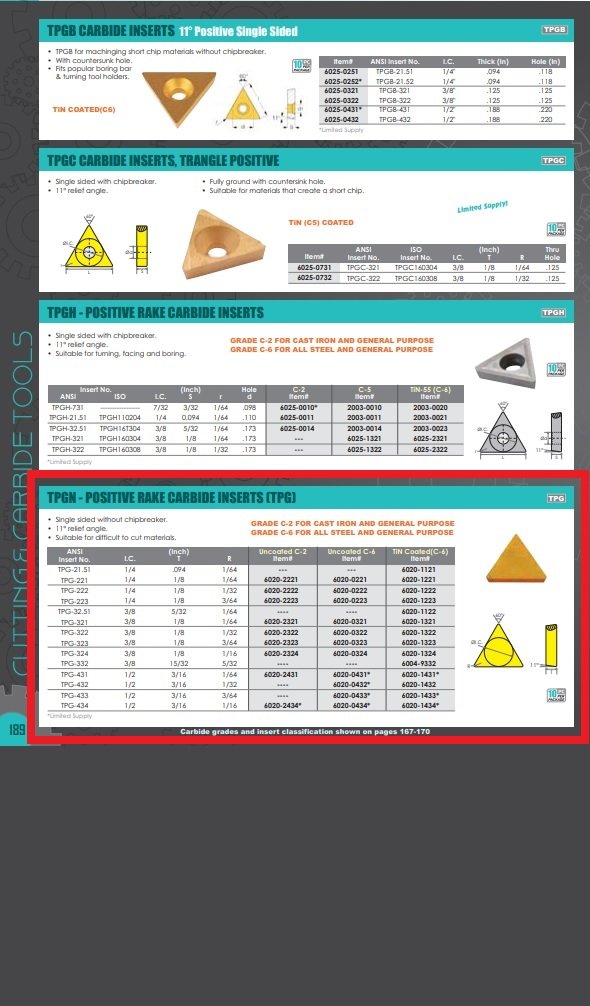 - TPG-32.51 C-6 TiN Coated Carbide Insert