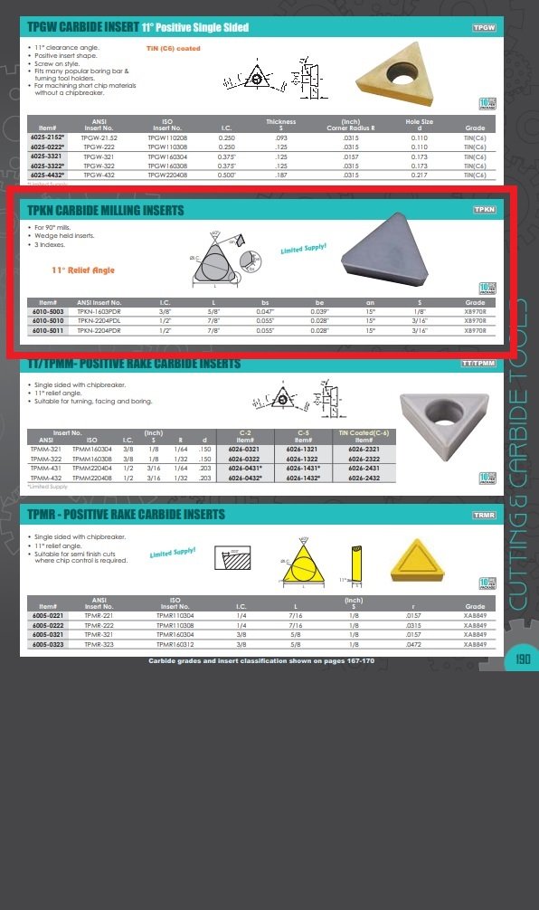 TPKN-2204PDL CARBIDE MILLING INSERT (6010-5010) (SKU: 6010-5010)