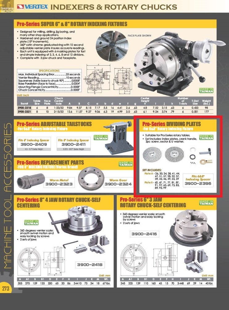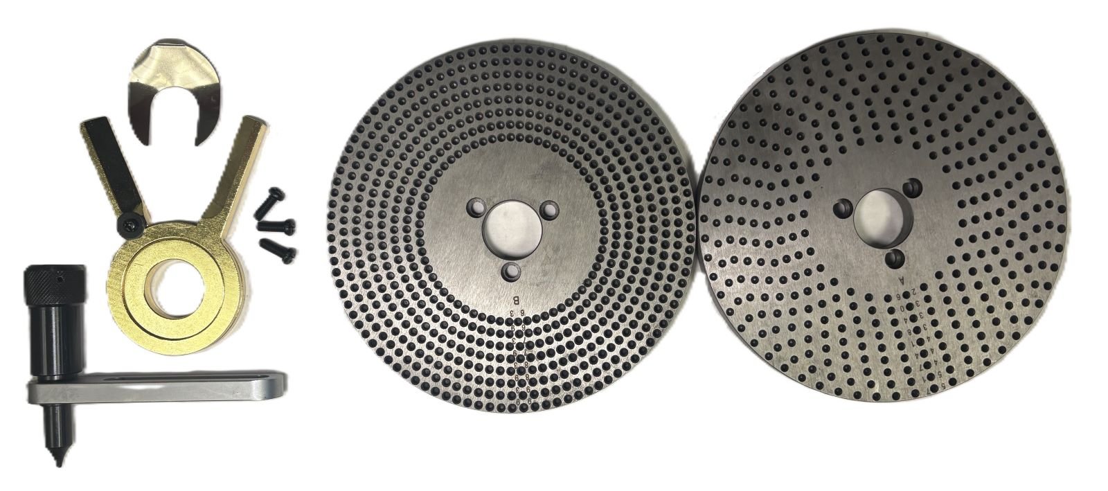 - Set includes: index plates, crank handle, 3 screws, sector & U washer