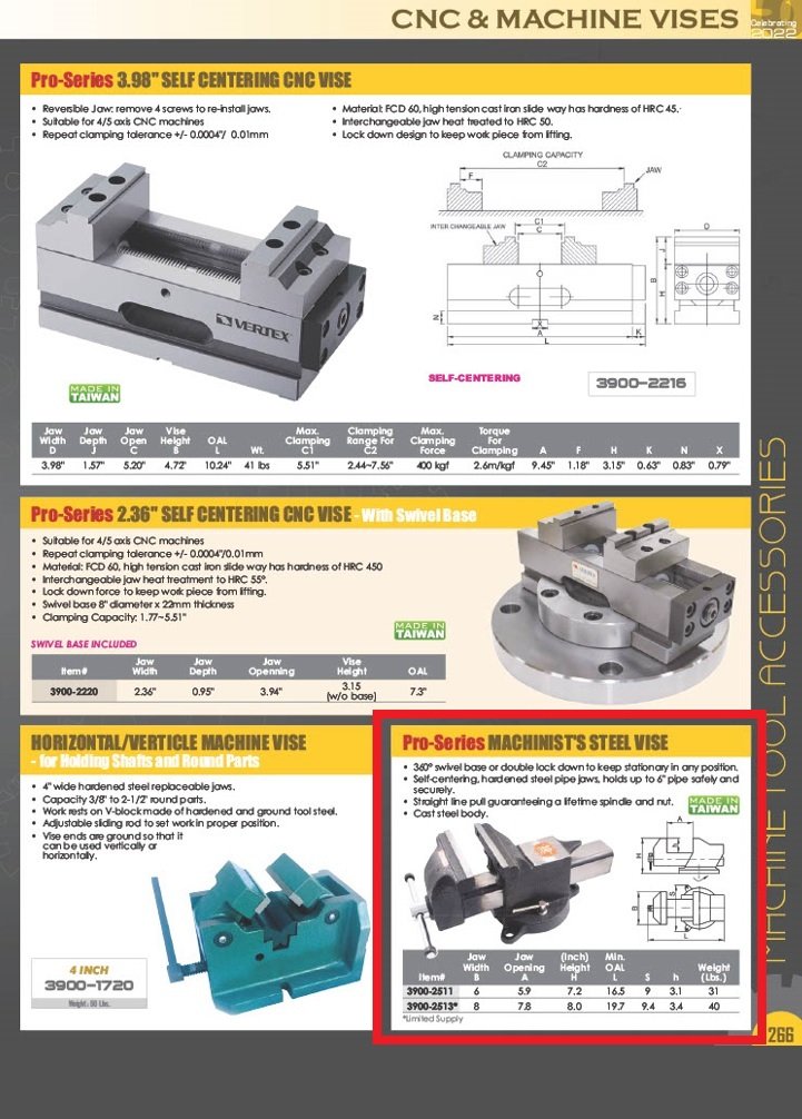 VERTEX PRO-SERIES 8″ MACHINIST’S STEEL VISE (3900-2513) (SKU: 3900-2513)