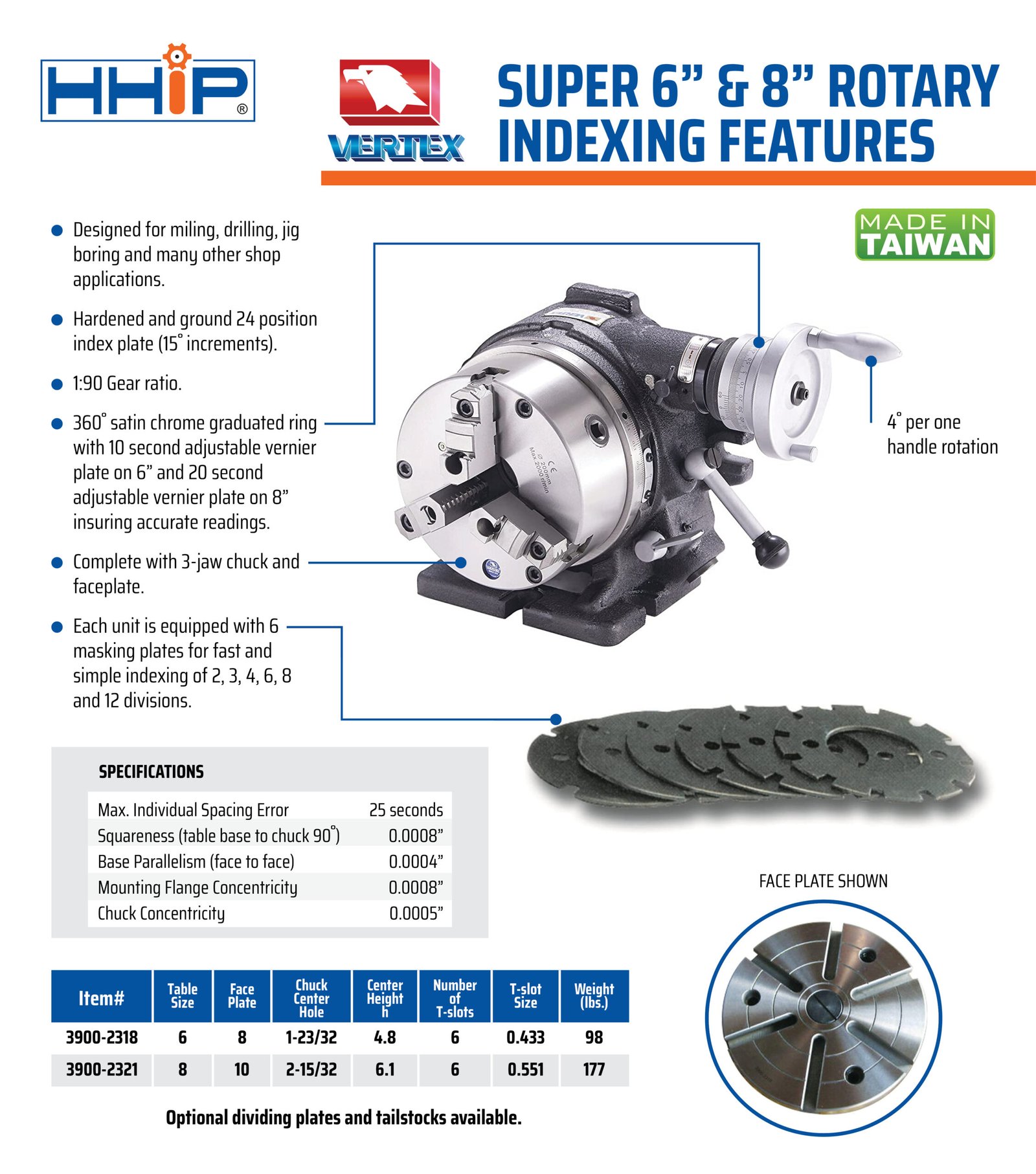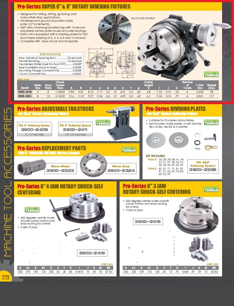 VERTEX SUPER 8″ ROTARY INDEXING FIXTURE MADE IN TAIWAN (3900-2321)