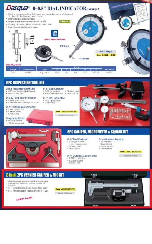- Z-Limit 2 Piece Vernier Caliper & Micrometer Inspection Tool Kit